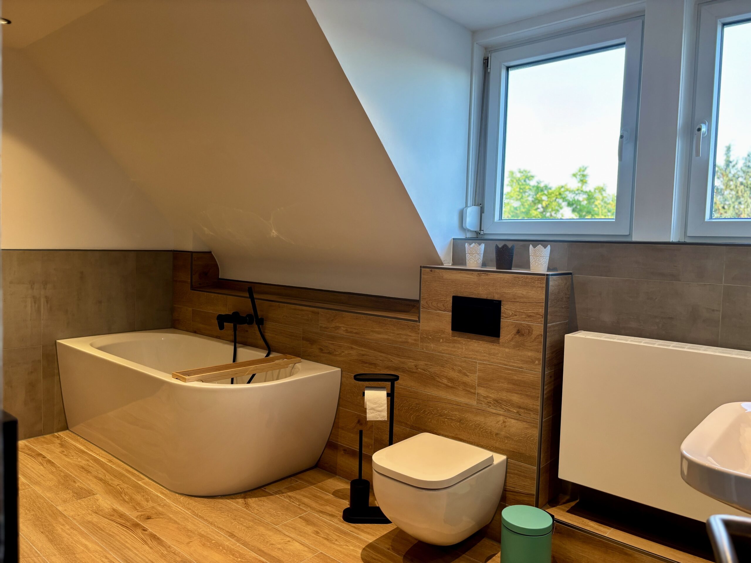 Frisch sanierte 3-Zimmer-Wohnung mit Platz für bis zu 6 Personen: Doppelbettzimmer, Zweibettzimmer und Schlafsofa. Helles Bad, moderne Einbauküche und gemütlicher Wohnbereich laden zum Wohlfühlen ein. Extras: Smart-Home, TV, Wickelkommode und E-Ladesäule am Haus. Perfekt für Familien, Paare oder Freunde, die Komfort und moderne Ausstattung in entspannter Umgebung genießen möchten.
